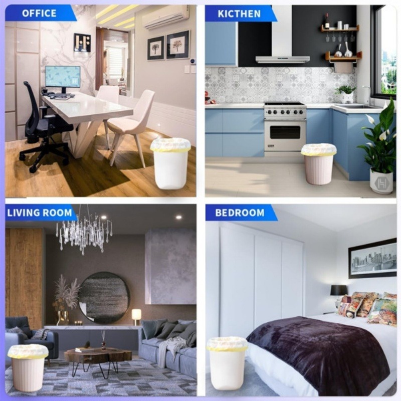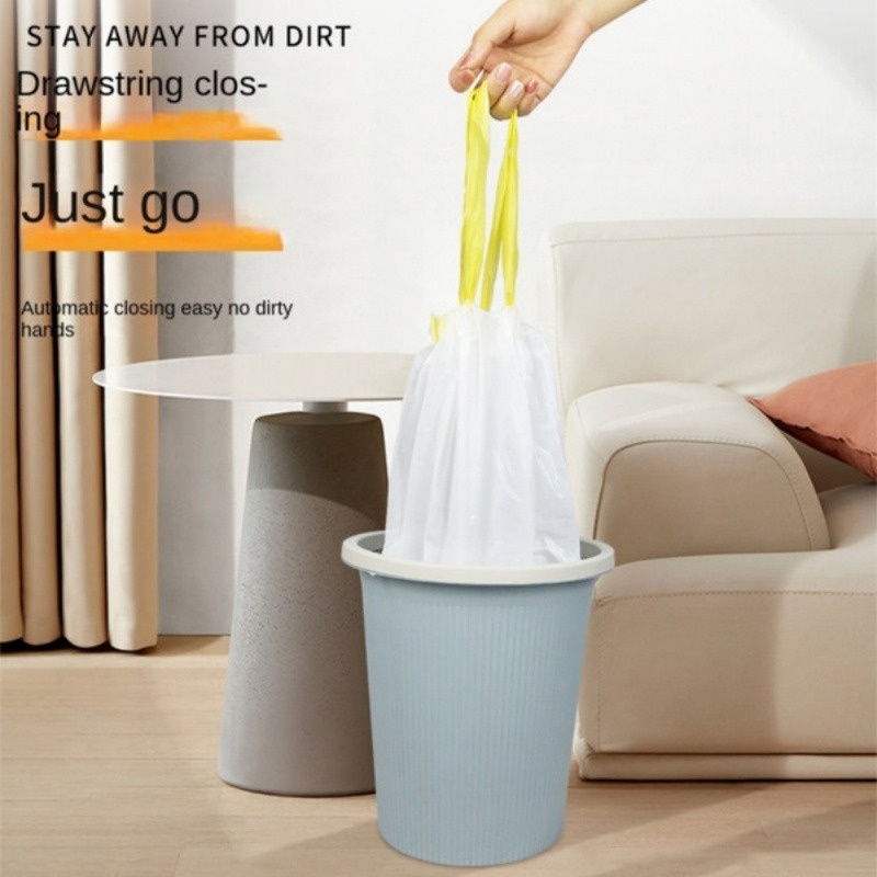Five rolls with a total of ninety pieces Household cream drawstring garbage bag thickened disposable black cleaning bag for kitchen and bathroom