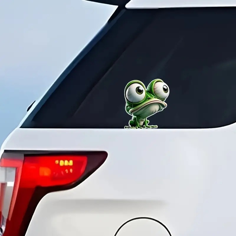 品牌2pcs 3D cartoon frog stickers - vinyl stickers, suitable for car stickers, motorcycle stickers, laptop stickers, skateboard stickers, wall stickers and water bottle stickers, - durable car vinyl stickers, big eyes design