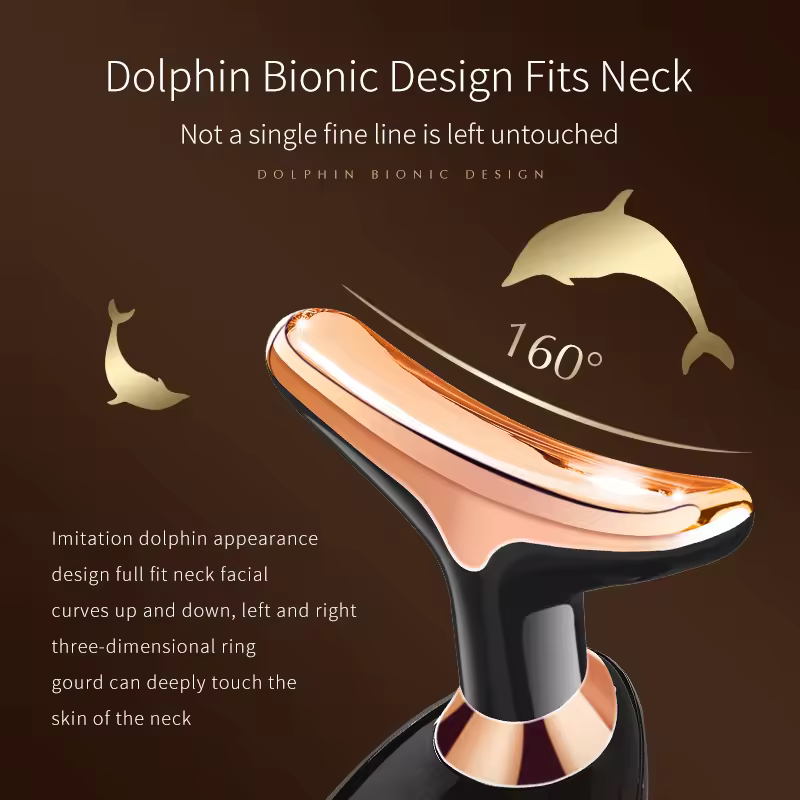 | Imitation dolphin-shaped massage head, curved design that fits the face and neck |