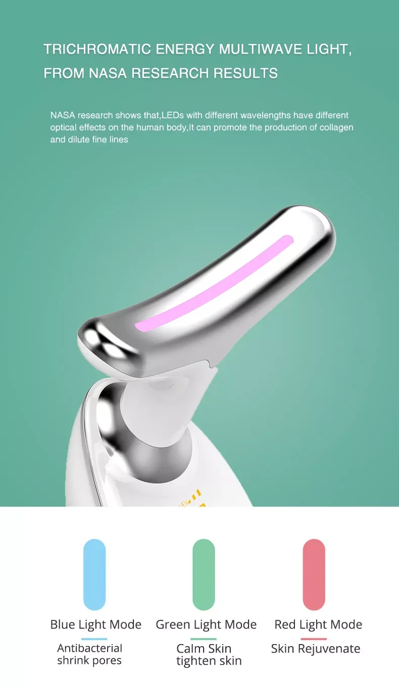 | Three color light modes, blue light to focus pores, green light to calm skin, red light to rejuvenate skin, can be used for 12 |